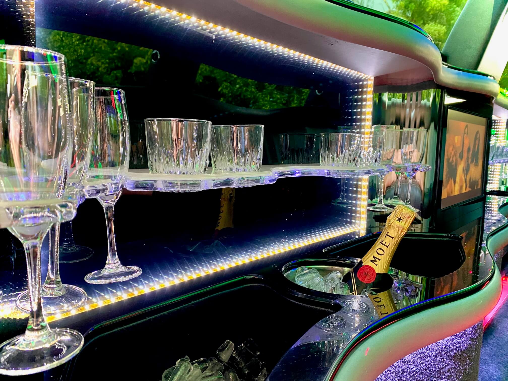 Step inside and enjoy a premium entertainment experience, including a DVD player, CD player, Bluetooth connectivity, and USB support—allowing you to bring your own music or media. The illuminated bar and vibrant laser interior lighting create the perfect atmosphere for celebrations, photos, and unforgettable moments on the road.